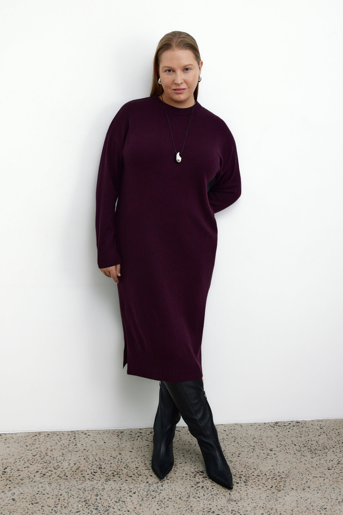 Платье длинное из шерсти мериноса — Баклажановый