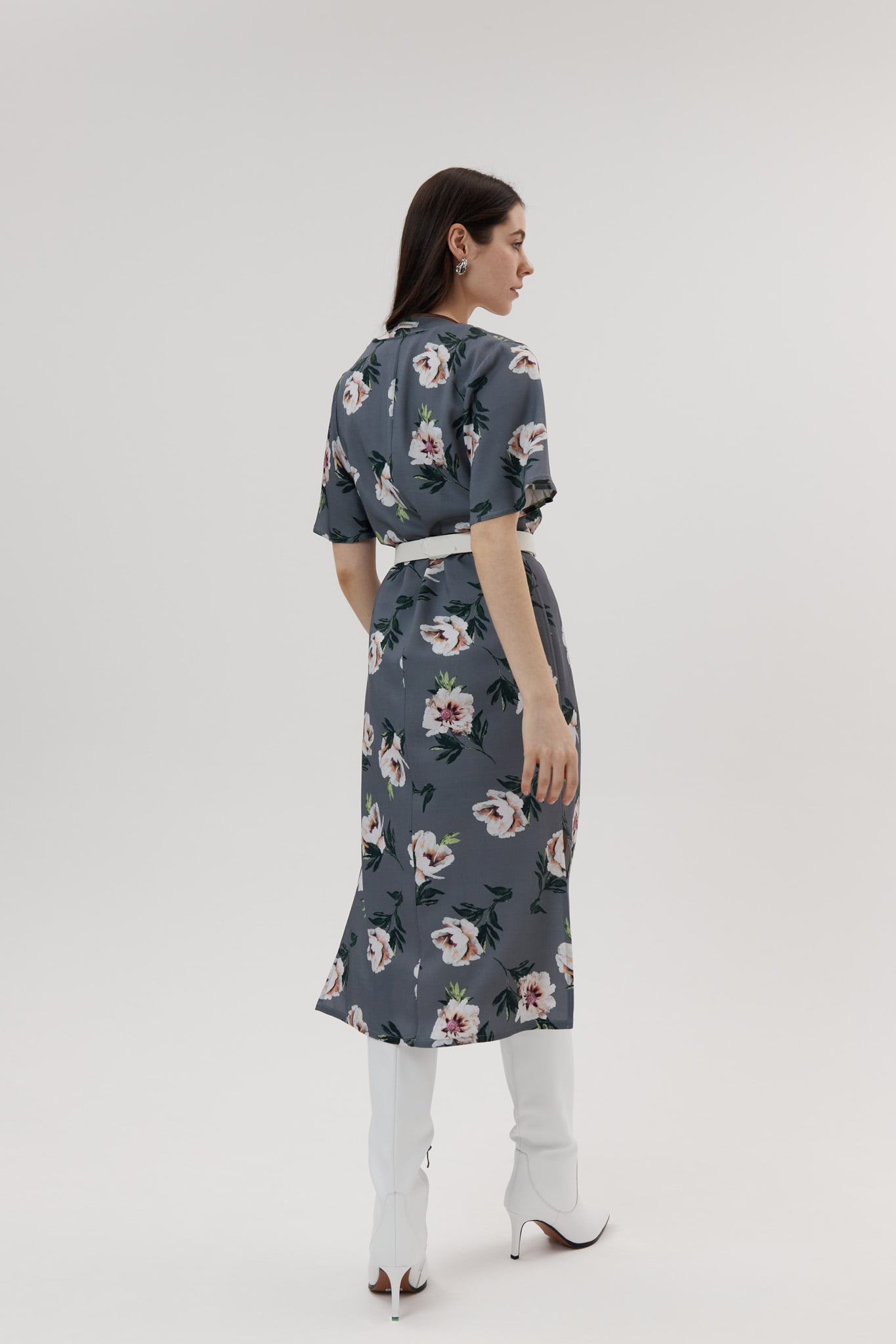 Платье с пионами — Серый