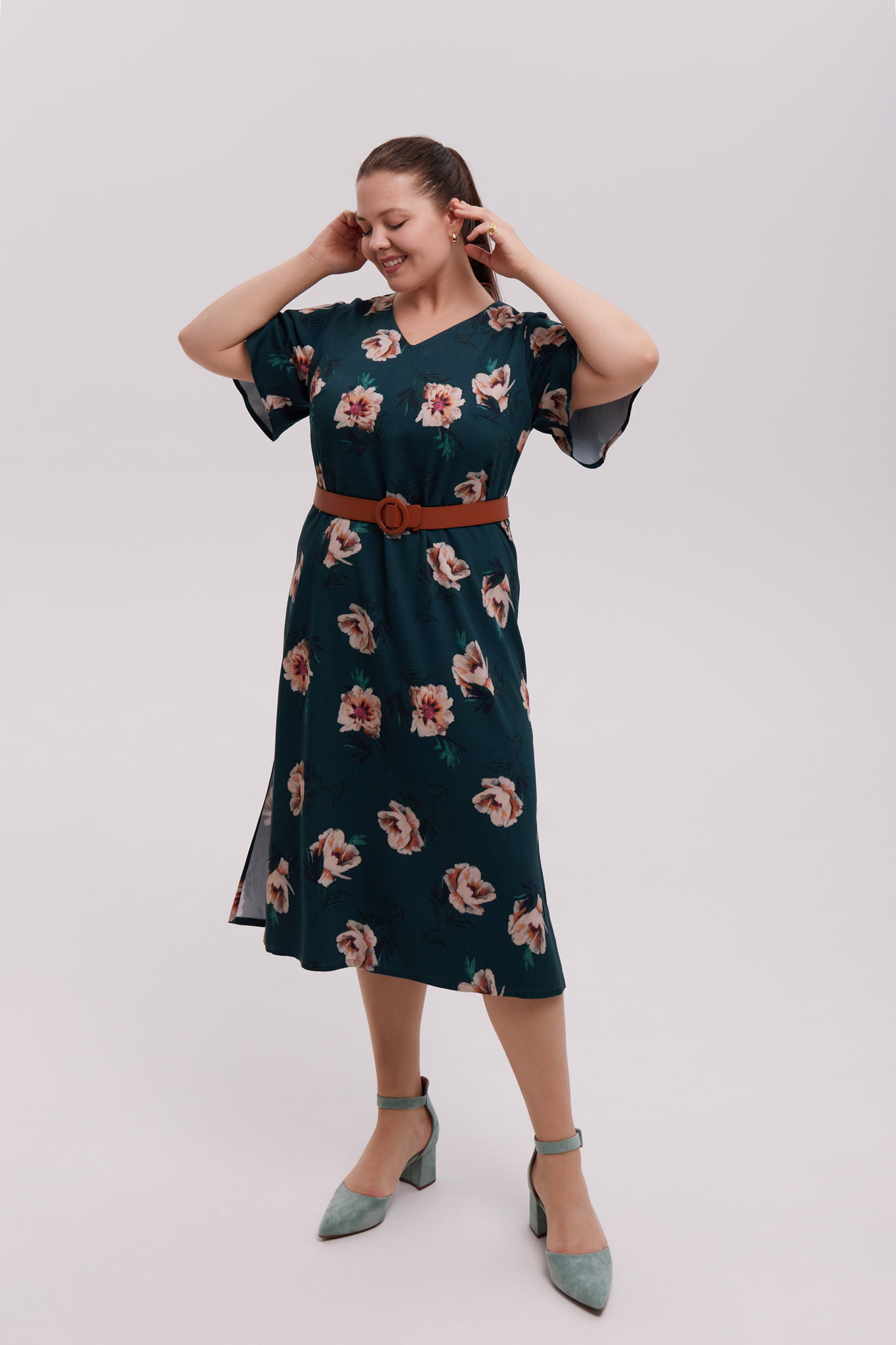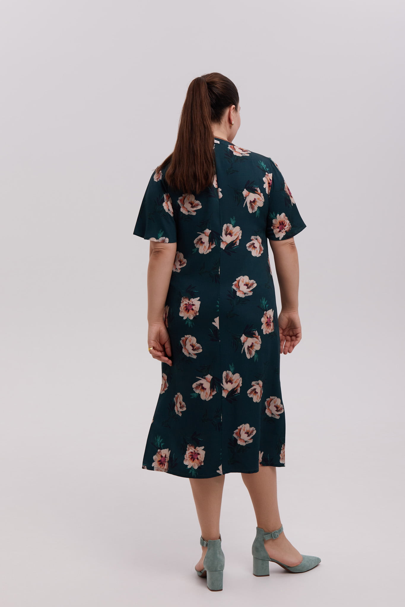 Платье с пионами — Зеленый