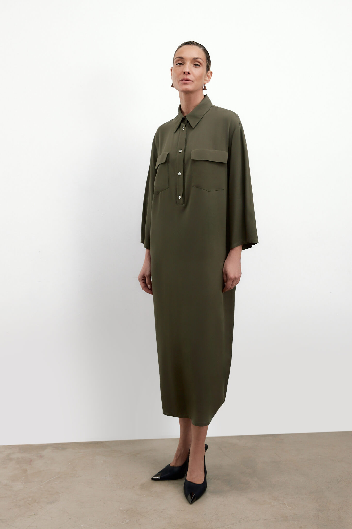 Платье с декоративными карманами — Хаки