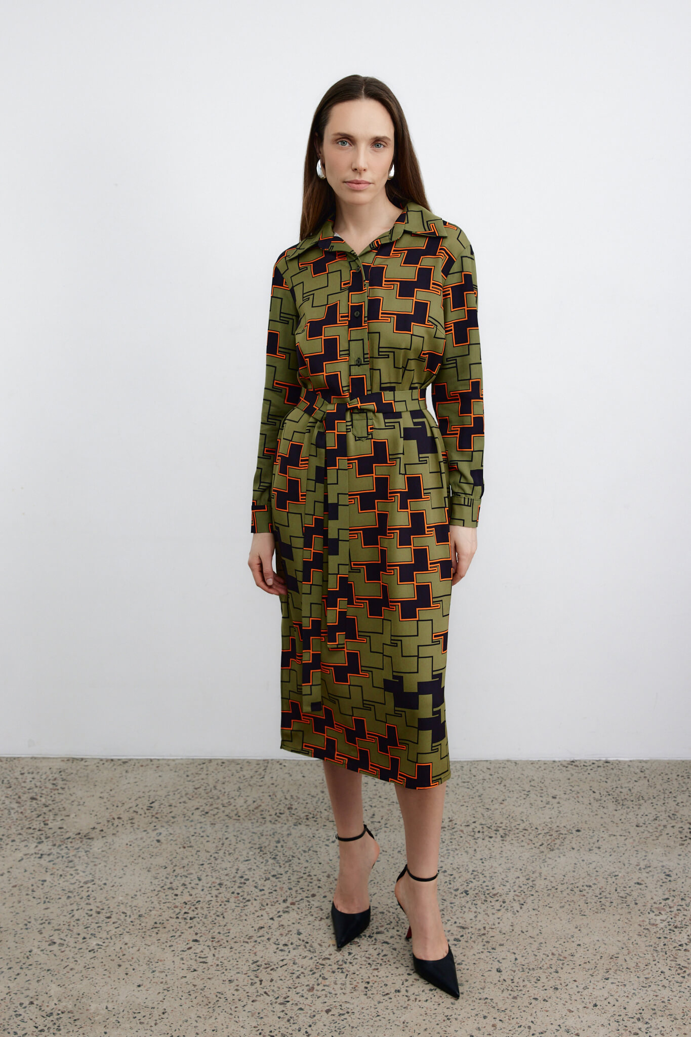 Платье-рубашка с орнаментом — Хаки